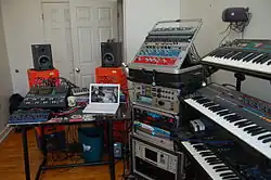 Motorized potentiometers can be found in audio/video equipment, specifically mixing consoles.[1] In this application, they are called motorized faders. Mixing consoles with motorized faders typically are used to save and restore settings on the same console and sometimes to transfer settings to a different console. Save and restore also allows to control more channels then there are sliders by switching which tracks are controlled.[2] While historically, the faders where literal motorized potentiometers, nowadays faders may directly digitize the fader position and apply the value digitally in the digital signal processing.