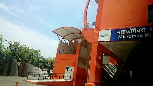 The station was named after Indian handset manufacturing company Micromax Informatics under corporate branding of stations, but its rights expired in 2019. This metro station is well connected to DLF industrial city and the headquarters of many MNCs. It's the nearest metro station for Ambience Mall, Gurgaon.