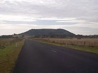 Mount Schank consists of land adjoining both sides of the Riddoch Highway between Mount Gambier to the north and Port MacDonnell to the south. The locality includes a number of geological features consisting of the dormant[12] volcano, Mount Schank, which is located on the eastern side of the Riddoch Highway and a number of water-filled sinkholes such as the Little Blue Lake located on land to the west of the Riddoch Highway.[1] The majority land use within the locality is agriculture with an area located between the Riddoch highway and the western side of the dormant volcano is zoned for industrial purposes.[13][1]