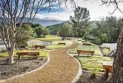 Teva at Mount Sinai Simi Valley is located near Kamenir Chapel, overlooking a protected nature reserve, this beautifully tranquil area is reached by a meandering stone path. Along the path are olive and pine trees, stone walls, and handcrafted wooden benches that create a protected space that envelopes visitors in shaded comfort and peace.