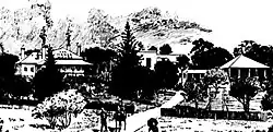 From the verandah of the Manor House one overlooks the buildings of the township, the railway station, and a vast stretch of undulating country, broken by many hollows, which is one of the chief characteristics of mountain scenery, each succeeding ridge being bluer or more purple than the last, until the picture sinks away into a distance which mingles with the sky."[15]