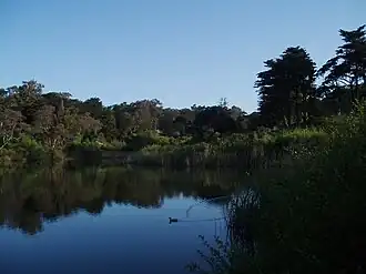 Mountain Lake is a 4-acre (1.6 ha) body of water[4] east of State Route 1 (Park Presidio Boulevard). The lake is at the southern tip of the Presidio of San Francisco and just south of the Presidio Golf Course. It is one of the last natural lakes in San Francisco and the only natural lake in the Golden Gate National Recreation Area.[1] The only natural freshwater lakes in San Francisco are Pine Lake, Lake Merced, and Mountain Lake.[5]