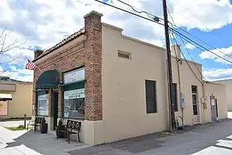 The Mountain States Telephone and Telegraph Company Building in Meridian, Idaho, is a 1-story commercial office constructed of reinforced concrete, stucco, and brick in 1928. The building features a short, modest tile roof above its Main Street entrance, indicating a Spanish Revival design influence. The Main Street exposure is clad with brick veneer, and above the entrance is a corbelled brick frieze band. A masonry garage was added at the rear of the building in 1948. The garage was remodeled in 1998.[2]