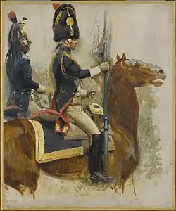 The Mounted Grenadiers of the Imperial Guard (French: Grenadiers à Cheval de La Garde Impériale) was a heavy cavalry regiment in the Consular, then Imperial Guard during the French Consulate and First French Empire respectively. They were the senior Old Guard cavalry regiment of the Imperial Guard and from 1806 were brigaded together with the Dragoons of the Imperial Guard.[1]