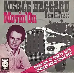"Movin' On" is a song written and recorded by American country music singer Merle Haggard and The Strangers. It was released in May 1975 as the third single and partial title track from the album Keep Movin' On. Originally, it was the theme song to the 1974-1976 NBC-TV series of the same name and references the lead characters of the series, Sonny Pruitt and Will Chandler, by name. A full-length version of the song was released as a single in 1975, and it topped the Billboard Hot Country Singles chart that July.[1]