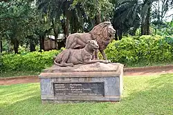 The sculpture symbolises the Mpologoma (Lion) Clan Totem located in Mengo Kampala