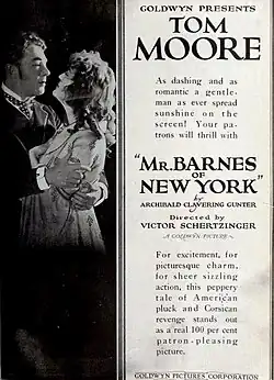 Mr. Barnes of New York is a 1922 American silent drama film directed by Victor Schertzinger and starring Tom Moore, Anna Lehr and Naomi Childers.[1] It is an adaptation of the novel of the same name by Archibald Clavering Gunter, which had previously been turned into a 1914 film.