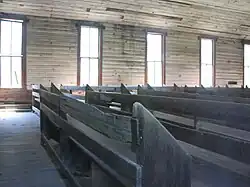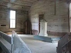 The first church building was a log structure built on land donated by James Monroe Gray.[2][4] It stood across the road from the current building and was also used as a school. It was torn down sometime between 1890 and 1900.[2]