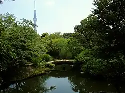 ![]() Mukōjima-Hyakkaen Garden with Tokyo Skytree in the background | |