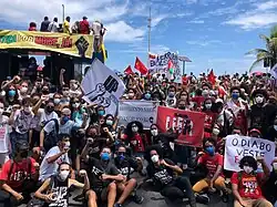 Protests were held on February 5 in several Brazilian cities, including Rio de Janeiro,[3][35][36] São Paulo,[35][36][3] Salvador,[35][36] Brasília,[35][36] São Luís,[35][37] Porto Alegre,[35][36] e Belo Horizonte,[35][36] Recife,[38] Cuiabá,[38] Curitiba,[38] and Palmas.[38] Outside the country, protests were scheduled to occur in New York City and London. Deutsche Welle reported there was a demonstration near the Brazilian embassy in Berlin.[39][40] Besides calling for justice for Kabagambe, the protests denounced racism, xenophobia, and police brutality against Black people in the country.[41] There was also calls for the impeachment of Jair Bolsonaro.[36]