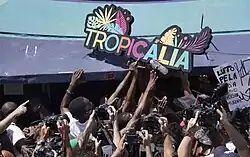 Protesters in Rio de Janeiro removed a sign from the Tropicália kiosk