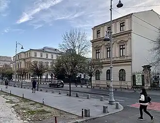The original portion of Romanit Palace (Romanian: Palatul Romanit) was erected for the early 19th-century boyar C. Faca at the corner of Calea Victoriei (then Podul Mogoșoaiei) and Calea Griviței (then Podul Târgoviștei). Faca died before it was completed, and it was sold to a Greek named Romanit. The Romanian writer Ion Ghica (1816-1897) wrote about the luxurious interior in his memoir: "... the walls of all the chambers stuccoed, imitating the rarest and most beautiful marble, the ceilings of a rare wealth and taste... The chambers all winter bedding with rich carpets from Usack and Agem and in summer with fine mats from India; coverings and thick silk curtains from Damascus and Aleppo. Chairs and sofas, all mahogany and ebony, inlaid with mother-of-pearl, and gilded bronze figures dressed in Cordova leather. In all the chambers, chandeliers hung from ceilings with garlands between doors and windows, all of Venetian crystal."[3]