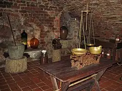 The museum's permanent collection consists of the belongings of Lithuanian doctors, pharmacists and hospitals, along with medical and pharmaceutical implements and documents. Temporary exhibitions commemorate prominent doctors' and pharmacists' anniversaries.[1] The exhibits include dental equipment along with displays of archaic medications such as Erektosan (a herbal version of Viagra), love potions, Venus Hair Potion, and Caput Mortuum (a medieval male vitality booster and epilepsy treatment composed of dead heads).[3][4]