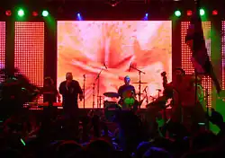In the early 1990s, dance music saw more exposure at rock music festivals like Glastonbury and Reading. Raves, many illegal, continued to be organised and the tension caused by police attention, new putative legislation aimed at organisers, and the increase of harder music, led many dance music fans to return to legal night clubs, where rave music had given way to progressive house.[25] Other clubs emerged to play the ever-splintering genres associated with the house music and rave scene, including hardcore techno, downtempo and trance, drum and bass and happy hardcore.[26] The Bristol scene saw the development of trip hop, which mixed house and hip hop producing successful bands such as Massive Attack and Portishead.[27] The 1990s also saw the development and refinement of IDM (Intelligent Dance Music), which borrowed from forms such as techno, drum and bass, and acid house music and introduced more abstract elements, including heavy use of digital signal processing.[28] Among the most commercially successful products of these scenes were acts like The Prodigy, Chemical Brothers and Fat Boy Slim.[29]