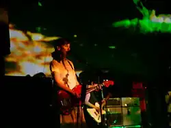 One of the most recognisable aspects of My Bloody Valentine's music is Shields' electric guitar sound, which "use[s] texture more than technique to create vivid soundscapes."[97] During the late 1980s, Shields began customising the tremolo systems for his Fender Jaguars and Jazzmasters; extending the tremolo arm and loosening it considerably, to allow him to manipulate the arm while strumming chords,[97] which resulted in excessive pitch bending. Shields used a number of alternate and open tunings[19] that together with his tremolo manipulation achieved "a strange warping effect that makes the music wander in and out of focus", according to Rolling Stone.[98] Shields' most notable effect is reverse digital reverb, sourced from an Alesis Midiverb II or Yamaha SPX90 effects unit. Together with the tremolo manipulation and distortion, he created a technique known as "glide guitar".[99] Shields effects rig, which is composed largely of distortion, graphic equalizers and tone controls,[100] consists of at least 30 effects pedals[63] and is connected to a large number of amplifiers, which are often set to maximum volume to increase sustain. During live performances, in the closing song "You Made Me Realise", My Bloody Valentine perform an interlude of noise, which can last for half an hour and often reaches 130 dB.[101] Shields later remarked "it was so loud it was like sensory deprivation. We just liked the fact that we could see a change in the audience at a certain point."[40]