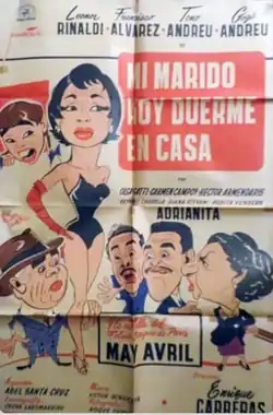 My Husband Sleeps At Home Today (Mi marido hoy duerme en casa) is a 1955 Argentine film directed by Enrique Carreras from a script by Abel Santa Cruz. It stars Leonor Rinaldi, Francisco Álvarez, May Avril and Gogó Andreu and was released on October 13, 1955.[1] May Avril was at that time a star of the Folies Bergère's revue cast.