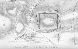There are several round barrows and a stone circle on Mynydd Bach Trecastell dating to Bronze Age Britain. The Roman roads from CICVCIVM (Y Gaer) to MORIDVNVM (Moridunum, Carmarthen) via Llandovery ran over the hill and evidence of a couple of castras and a Roman fortlet remains on the hill.