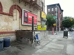Both platforms formerly had another same-level entrance/exit at their south ends and directional signs indicate they led to Willoughby Avenue.[5] The spaces are blocked with chain link fences and some of the single street staircases on each side remain intact.