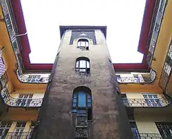 The building was a so-called "Yellow-star house". The yellow-star houses were buildings in Budapest, which were appointed as residence for Jews, under the regulation 1944-IX/147.501-514 issued on 16 June 1944. The origin of the name is that under the regulation the entrance of the buildings had to be marked with the Star of David. Also in accordance with this regulation the Jews were obligated to wear yellow-stars as well.