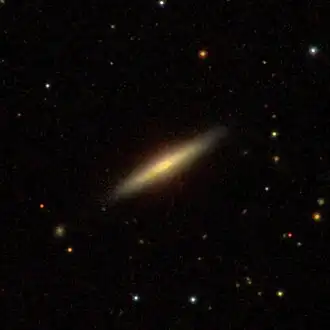 NGC 489 is probably an edge-on spiral galaxy located about 97 million Light-years away from Earth in the constellation Pisces.[2][3] NGC 489's calculated velocity is 2507 km/s.[3] NGC 489 was discovered by German astronomer Heinrich Louis d'Arrest on December 22, 1862.[4]