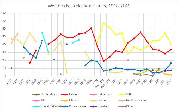 From its creation in 1918 until the 1935 general election, the seat was held by Liberal MPs of varying descriptions. In 1935, the seat was captured by Malcolm Macmillan of the Labour Party, who would go on to retain the seat for the following 35 years. Macmillan was defeated at the 1970 general election by the Scottish National Party candidate Donald Stewart – who thus became the first SNP member to be represented at Westminster. Since 1970, the seat has alternated between SNP and Labour. Stewart held the seat until he stood down for the 1987 general election, when the seat was regained for Labour by Calum MacDonald.