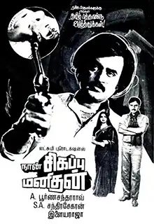 Naan Sigappu Manithan (transl. I am a Red Man) is a 1985 Indian Tamil-language vigilante action film directed by S. A. Chandrasekhar and produced by A. Poorna Chandra Rao under Lakshmi Productions. The film, a remake of Hindi film Aaj Ki Awaaz, stars Rajinikanth, K. Bhagyaraj and Ambika with Vijay as a child artist in the film. The music was composed by Ilaiyaraaja, while cinematography and editing were handled by M. Kesavan and P. R. Gautham Raju.[1][2]