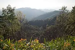 Namtok Mae Surin National Park is located east of Mae Hong Son town in Mae Hong Son and Khun Yuam districts. The park's area is 247,875 rai ~ 397 square kilometres (153 sq mi).[2] The highest point is Doi Pui peak at 1,685 metres (5,528 ft). Doi Pui is part of the Thanon Thongchai Range, whose various peaks within the park range from 300–1,700 m (980–5,580 ft).[1]