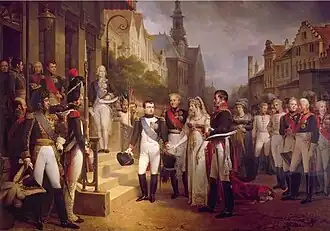 Napoleon Receiving the Queen of Prussia at Tilsit (French: Napoléon Ier reçoit la reine de Prusse à Tilsitt, 6 juillet 1807) is an 1837 history painting by the French artist Nicolas Gosse.[1] It depicts a scene on 6 July 1807 during the negotiations of the Treaty of Tilsit during the Napoleonic Wars. Having defeated combined Prussian-Russian forces on the battlefield, Napoleon had met Alexander I of Russia and Frederick William III of Prussia in the town of Tilsit in East Prussia.