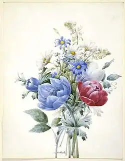 Nathalie would go on to become a student of Pierre-Joseph Redouté, an esteemed botanical illustrator.[2] As a student, she displayed the influence of Redouté in the realm of botanical illustration in her use of detail, color, and design. Her works would be put on exhibition twice in the Parisian salons, in 1822 and 1827, where they were received positively.[1]