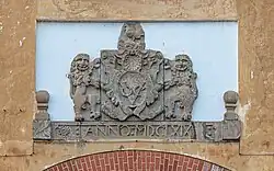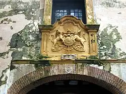 Above the Old Gate the British Coat of Arms is seen inscribed at the entrance, the inner part of the gate has an inscription, with the date, 1669, the letters VOC, (an abbreviation of Verenigde Oostindindische Compagnie, the Dutch East India Company), and the insignia of a cock flanked by two lions.[2] When the new gateway (the main or northern gate) was built by the British in 1873, piercing the main rampart between the Sun and Moon Bastions, the importance of the old gate was reduced, although it continued to be used as the main entrance to the harbour and port of Galle. During its history spanning well over three centuries, the functions of the Warehouse were many and varied. In post-independent Sri Lanka it was used as an administrative office complex until these offices were shifted to the new secretariat building outside Galle Fort. The building was subsequently reduced to a derelict building due to long years of negligence, lack of maintenance and natural decay.
