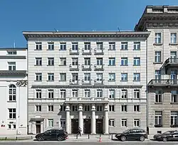 The National Media Council plaque on the tenement house at Aleje Ujazdowskie 26 in Warsaw