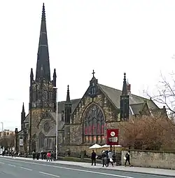 The centre is to occupy the former Trinity St David's church on Woodhouse Lane, adjacent to the University of Leeds campus.[3] This is a grade II listed building,[4] which was a Congregational church from 1902 to 1972 and a United Reformed church from 1972 to 1997, and more recently has been used as a university furniture store and as a nightclub under the names "Halo" and "Quilted Llama".[3][5]