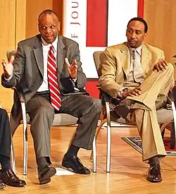 New York Times columnist William C. Rhoden (left) and former ESPN contributor Stephen A. Smith discuss diversity in the newsroom at a NSJC event in Indianapolis on 09/14/09.