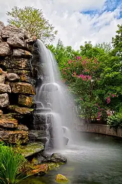 The zoo's state-of-the-art giant panda habitat features three outdoor areas with animal enrichment, an indoor area with a rocky outcrop, a waterfall, and viewing areas. The exhibit is designed to replicate the rocky, lush terrain of the pandas' natural habitat.[8]