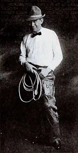 When Will transitioned to vaudeville, he introduced a trick roping act where he would rope both a horse and rider on the small vaudeville stage. His roping talents, along with the comedic commentary that accompanied his acts, soon made him famous. Although Rogers did not typically focus on showcasing his Indigenous heritage in his vaudeville performances, he often emphasized his cowboy and ranching background. Later in his career, he went on to star in Western films.[6]
