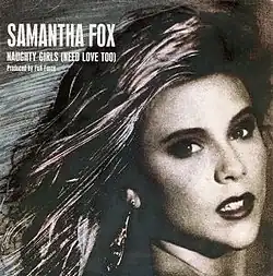"Naughty Girls (Need Love Too)" is a song by English singer Samantha Fox from her self-titled second studio album (1987). It was released as a single in 1988 by Jive Records and was a collaboration between Fox and hip-hop group Full Force. It describes how a "naughty girl" has unexpectedly fallen in love. With the song initially presented to Fox in a less melodic form, she insisted on the addition of guitar.[2] Her producers were at first reluctant to comply, but later added the distinctive guitar sound with the use of a Fairlight.[2]