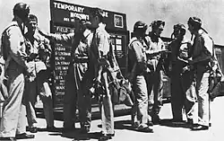 Cadets and instructors check the flight assignment board at Naval Air Station Livermore in 1944