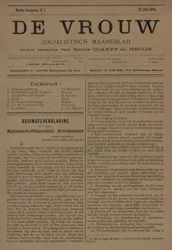 In 1893, with the Ghent socialist Emilie Claeys, van Kol found the Hollandsch-Vlaamsche Vrouwenbond (Union of Dutch and Flemish women). Together, they published a monthly magazine, De Vrouw, until 1900. Van Kol published very avant-garde articles in favor of the emancipation of women which were not always very well received. In numerous speeches in the Netherlands and Belgium, she pleaded for birth control (which caused De Vrouw to be blacklisted by the Catholic Church), for equal career opportunities for women and men, and for equal pay for equal work.[1]