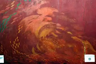 Terremoto ('earthquake'), painted in 1958, is over 30 square meters, and covers the whole vestibule wall of the Nile Cinema. The mural has visible cracking produced during the Earthquake in 2010.[1]