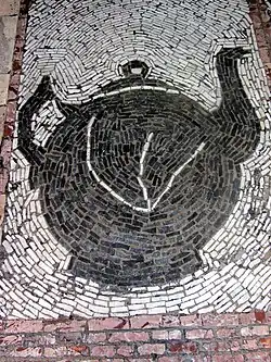 In even worse conditions is Quinchamalí (1958) at the Juan Esteban Montero Gallery: the paint of the mural is peeling and warping due to the humidity. The art restorer Carolina Broschek maintains that the mural can be saved, but the owner of the building on which it is painted, Yusif Tala, opined that the Nemesio Antúnez Foundation should take care of the painting or move it to another place, as has no interest in preserving it.[2] In the same gallery, besides the mural, Antúnez installed floor mosaics which are still in perfect condition.