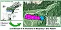 Isolated populations are known to occur in the Jarain area of the Jaintia Hills, the Baghmara area of the Garo Hills, adjacent to the Khasi Hills region of Meghalaya, in the Upper Kharthong area, of Dima Hasao district Assam and in some parts of Nagaland.[6]