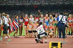 At the third day Dafne Schippers won in a new Dutch national record her semi final heat of the 100 metres in a time of 10.83. With this achievement she became the first Dutch finalist in the women's 100 metres at a World Championships. In the final, later that day, she broke her national record again with a time of 10.81 and won the silver medal.[1] Later, she won the gold medal in the 200 metres in a time of 21.63, a new European record.