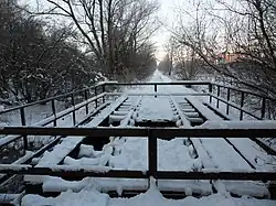 Closed bridge over the Dosenbek in Neumünster, looking towards the city (2010)
