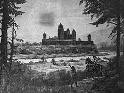 In the Autumn of 1255, King Ottokar II of Bohemia instructed Vok of Rosenberg to help new settlers move into the borderland. Between 6 November and the middle of December of that year, Vok founded the Wogendrüssel castle in the defensive bend of the Prudnik river. The castle controlled the trade route between Nysa and Opava. The foundation of the castle in this place is equivalent to the foundation of Prudnik as a settlement.[17] Prudnik was the northernmost stronghold of the Kingdom of Bohemia.[18]