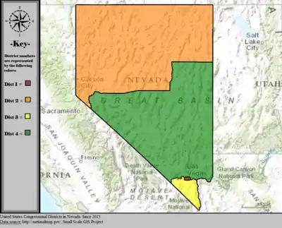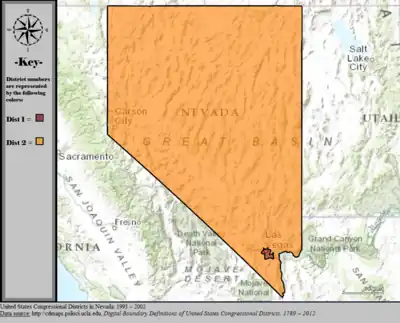 Table of United States congressional district boundary maps in the State of Nevada, presented chronologically.[3] All redistricting events that took place in Nevada between 1983 and 2013 are shown.