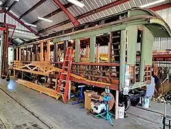 Passenger car being renovated at the museum