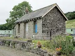 The Kington and Eardisley Railway developed an extension to the Leominster and Kington Railway from Kington, with ambitions to extend a cross-Wales railway line to Aberystwyth. Developing a small station 12 mile (0.80 km) from the town, the plans never came to fruition, only allowing services on the Great Western Railway to both Leominster and onwards to London Paddington. The station closed to passengers in February 1951, and freight in December 1951.[2] Since closure the station building and part of the platform have been restored within a caravan park.