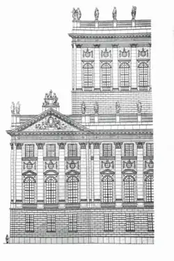 As the commissioned architect, Ludwig Hoffmann was to adhere even more closely to the basic plans than the participants in the competition. However, Hoffmann still tried to change the façade in particular to suit his ideas. While the original plan, for example, provided for a large triangular pediment with eight supporting columns (portico) at the emperor's request, Hoffmann planned a spacious vestibule with a colonnade of Corinthian columns with only a discreet pediment. He also made the window axes narrower than intended and planned the entire building to be 96 meters wide, four meters wider than the specifications called for. A spacious foyer was to be created behind the portico. Hoffmann placed the cash desks, which were to be built to the side of a central vestibule, at the two outermost ends and equipped each of these areas with its projection (Risalit), which was to accommodate further ancillary rooms.