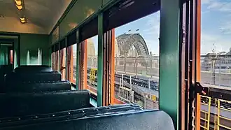 Sydney's Red Set F1, which is made up of four carriages (C7396, C3218, T4527, C3426), is preserved and in operational condition. This is as a result of collaboration between Sydney Trains, Transport Heritage NSW, who plan public trips and tours on the train, and Historic Electric Traction. The restored train resumed carrying passengers on 11 June 2016, 14 years since its last such trip.[13][14] One of the carriages of set F1, power car C3426, led the first electric train to cross the Sydney Harbour Bridge. All four cars were built in 1927.[15]