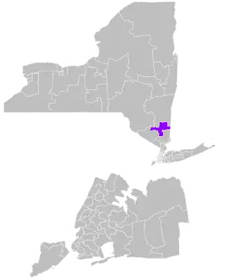 The district overlaps with New York's 17th, 18th, and 19th congressional districts, and with the 96th, 98th, 99th, 101st, 103rd, and 104th districts of the New York State Assembly.[4]